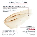 - Pigmentos que reflejan la luz para iluminar el contorno de los ojos y conseguir un aspecto despierto y fresco al instante.